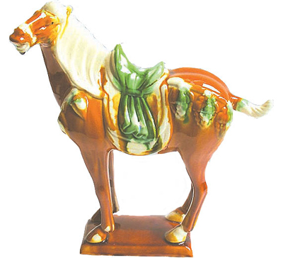 Tri-colored glazed pottery was exported to foreign countries in the early Tang, winning great favor. It was always been famed for its bright colors and pleasing shapes. Tri-colored glazed pottery of the Tang Dynasty is a shining pearl among ancient Chinese pottery.