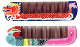 The manufacture of combs and fined-toothed combs is a complex and exquisite folk craft. Materials must be of the best quality, and the manufacturing process is also very complicated. The main materials for making combs are bamboo, wood and animal bones. The bamboo material is mainly selected from Yinshan grown, high-quality bamboo in South Jiangsu and West Zhejiang. Bamboo from these places is not only rigid and flexible but also durable. The wood material is mainly selected from such rare woods as rosewood, jujube wood, heath and boxwood. The comb and fined-toothed combs are made of boxwood and have fine wood character and clear grain, and also have functions of relieving headaches and itching, so they are particularly rare and welcomed. From preparing materials to the end product, a piece of wood comb needs 28 processes, and a single piece of fine-toothed comb needs 72 and a half processes. The delicate processes such as carving, drawing, scalding, engraving and grinding can only be finished by traditional manufacturing methods.