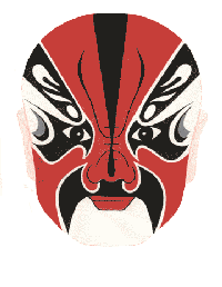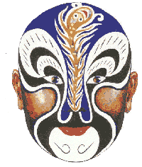 Thejingrole in Peking Opera has many forms of facial make-up, including the "whole-face", "three-tile face", "quartered face", "six-division face", "tiny-flowered face" and "lopsided face". Each pattern is rooted in his ability to make subtle and interesting changes within the human face, and each pattern has its own symbolic meaning. Take Meng Liang -- the famous warrior of the Song Dynasty -- for example. His face is painted red with an inverted gourd on his forehead. This pattern represents his weapon, thehuo hu lu.