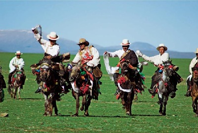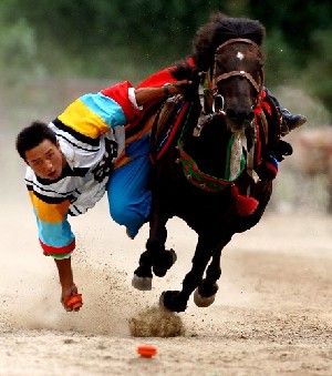 Horse races are held every year in the northern grasslands and in some other farming and herding areas. The ordinarily dressed participants, mainly young adults, race bareback over a ten-kilometer course.