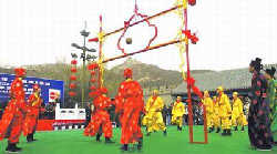 Zhu Qiuwas commonly performed at court feasts celebrating the emperor's birthday or during diplomatic events. This competitive match between two teams consisted of 12-16 players on each side.