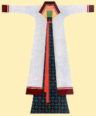 The patterns of ancient dress were classified into two groups: "coat-and-shirt" and the "one-piece." "Coat-and-skirts" were mainly worn by women and the "one-piece" by men.