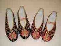 Colorful silky threads are used to embroider elaborate patterns on the shoe from heel to toe, and from the sole to the shoe padding.