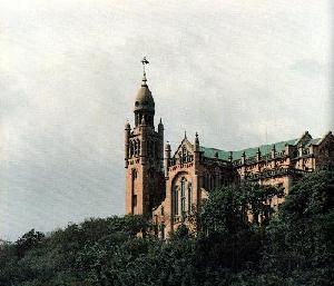 The front altar is made of marbles. The windows are made of colorful glass, and the top is covered with color-glazed tiles. Eight big bells are arrayed in the bell tower in the order of notes. The tower is 38 meters high, and there is a copper Madonna sculpture of over 8 meters high.