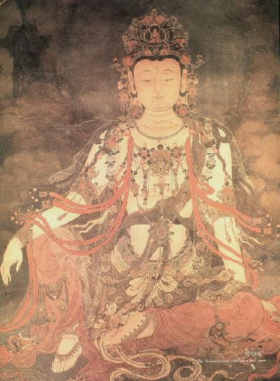In the temple, the background of Buddha altar is painted wit propitious clouds drawn with smooth drawing lines and painted with bright colors. Large-scale paintings of flowers such as rose, peony, palm, and lotus are painted on the walls, and the paintingAll Buddhas Attending the Meetingis on the upper part of the walls. On the north wall there is the paintingGod Explains Sanskrit in Heaven, on which the gods in different postures and with different characteristics are arranged vividly in a uniform layout and the same action.