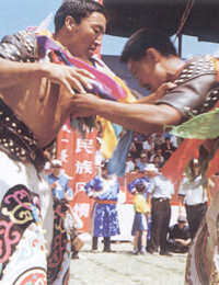 The Mongolians believe in Lamaism. They are hospitable, zealous and frank. They always offer the breast and tail of the sheep or lamb as a special treat to distinguished guests, and drink wine and sing songs to entertain guests while they eat. Presenting Hada, a strip of white silk, to the guest is the highest etiquette of the Mongolians.