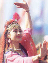 The Ozbeks believe in Islam and its customs. Ozbek dress and eating habits are basically the same as those of the Uygurs and Kazaks. Ozbeks are adept at singing and dancing. Their dance is resilient and lively. Most of their musical instruments are percussion instruments or hand shaken music makers. Women there are good at embroidering. Major Ozbek festivals include the Kaizhai Festival, Corban Festival, and Almsgiving Festival.