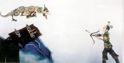 Its repertoire includes Generals Of Yang Family, General of Hu Family, General of Xue Family, General Yue Fei, The Water Margin, Five Summit Meeting, White Snake, Flaming Mountain, Cowherd and weaving girl, Twin Mountain Love, Crane Boy, The Moon Goddess Chang'er, A Lamb passing the Bridge, Crane and Turtle, Fox and Crow, Panda Mimi and etc. From the 1950's to 1990's, the troupe has taken part five times in the national performances organized by the Ministry of Culture. The shadow shows Three Attacks on the White Bone Devil, "Twin Mountain Love and Crane Boy won the 1st prize and awards for excellent performances. The Phoenix Film Studio of Hong Kong made a film adapted from the show Three Attacks on the White Bone Devil. In 1982, Qi Yongheng, a shadow show artist of the Troupe, was invited by UNESCO to deliver lectures to experts from 9 countries at the International Puppet Show College in France. In 1985, he was again invited to visit the US to play at the Disneyland. He also participated in the 8thWorld Drama Festival in Monaco and France, before taking part in the 7th World Puppet Show Festival. The company has visited Japan, Germany, Italy, Austria, Spain, the Netherlands as well as Taiwan and Macao regions with warm reception.