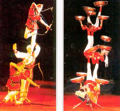 Since its establishment, the Troupe has produced a number of acrobatic programs with strong ethnic style and regional characteristics participating in the national or provincial theatrical festivals and acrobatic contests. In the last twenty years, the Troupe has won 12 prizes in the Region, 11 prizes in North China, 6 prizes in the national contests and 9 prizes at International contests. The repertoires includes: "Juijitsu Rolling Lanterns" which won the silver lion prize in 1987 first International Acrobatic Festival in Wuqiao, China, "Four Persons Kicking Bowls,, which won the gold medal in 1990 Thirteenth Tomorrow Acrobatic Festival in Paris ,"Archery" which won gold lion prize in the 1991 Third National Acrobatic Competition, "The Plastic Art with Bow" which won the bronze prize in 1992 the First International Acrobatic festival in Wuhan, China, "Juggling with the Feet by Three Persons which won the silver prize in the 1992 Fourth International Acrobatic Festival in Wuqiao and the bronze prize on the International Acrobatic and Circles Festival in Milan, Italy, "Balance on the Double Planks which won the silver prize in the 1997 Sixth International Acrobatic Festival in wuqiao, China. "Rolling Lanterns by Two persons", "Archery" which won the silver and bronze prizes in the 1998 Third National Juvenile Acrobatic Contest, "Ring Acrobatic" which won the bronze prize in November, 1996 Whole Country Magic Contest.