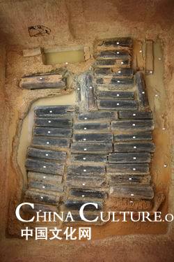 After a year of archaeological excavation, nearly one thousand pieces of historical relics have been found in the Li Zhou'ao ancient tomb in Jing'an county, Jiangxi province. The tomb is 14.5 meters long, about 11.3 meters wide and three meters deep. It is believed to date back to the Eastern Zhou Dynasty (770-221 B.C.).