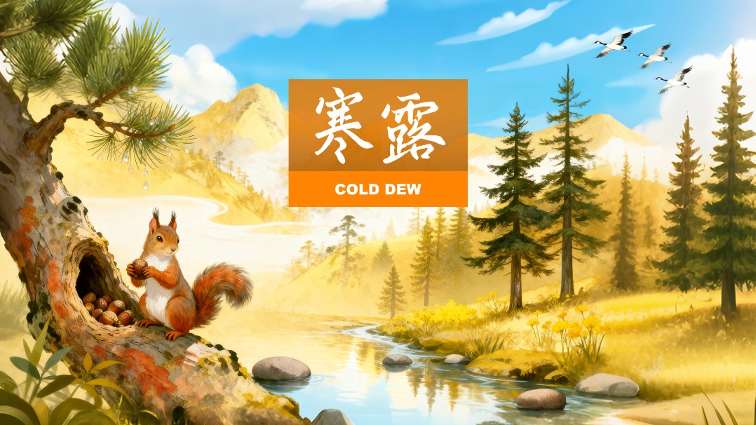 When Cold Dew descends, autumn deepens in hue. Chill dew thickens and frost greet the view.