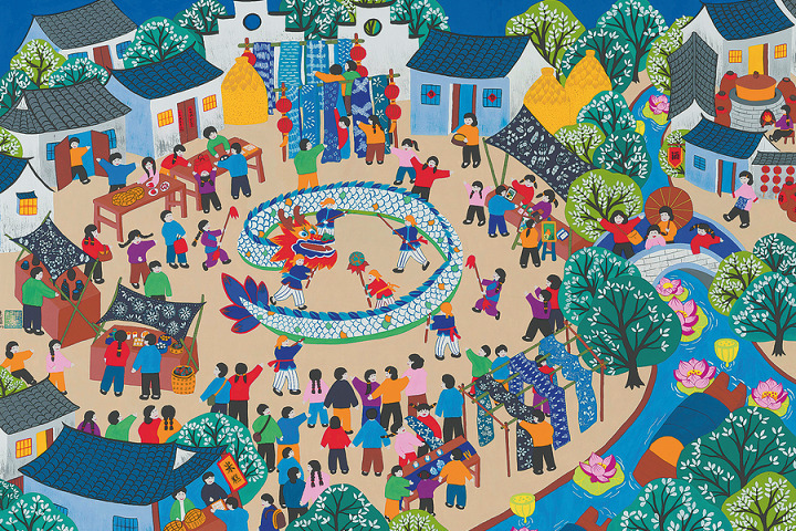 In Zhuang villages, residents gathered in courtyards chatting leisurely; during Tibetan New Year celebrations, people in colorful costumes weaving through the lively crowds; in houses, chickens pecking insects and grains from the ground, cats and dogs lying by doorsteps, and golden corn and fresh fruits and vegetables drying on rooftops.