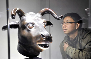 The heads of four beasts of the Yuanmingyuan (Old Summer Palace) – an ox, tiger, monkey and pig - are on display at the Shandong Museum in Jinan.