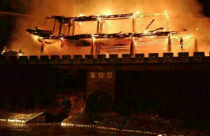 Fire burned Gongchen tower, a 600-year-old structure, in an ancient city in Weishan county, Dali prefecture, Yunnan province, to the ground on Jan 3, 2015. By 4:48 am, the flames that engulfed the 300 square meters of the tower were put out.
