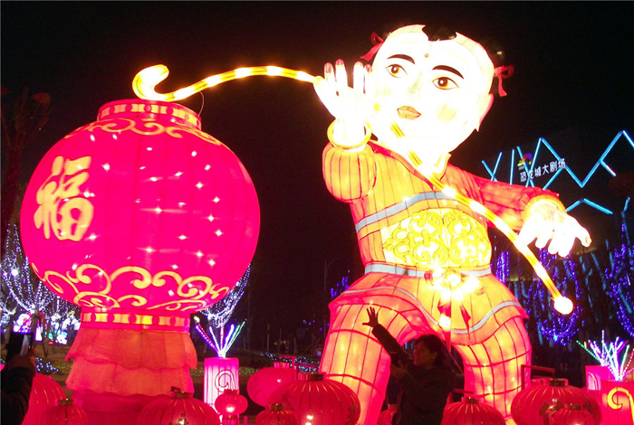 A large-scale lantern show for the New Year's Day attracted a large number of visitors at Universal Dinosaur Town in Changzhou city of East China's Jiangsu province on the evening of Dec 27, 2014.