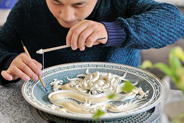 Lacquer thread sculpting is an art in southeast China which uses well-tempered lacquer threads to build decorative patterns. Originated in the mid-17th century, lacquer thread sculpting is listed as one of China's national intangible heritages.