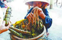It is a Chinese tradition to eat rice dumplings, or Zongzi, at the Dragon Boat Festival.