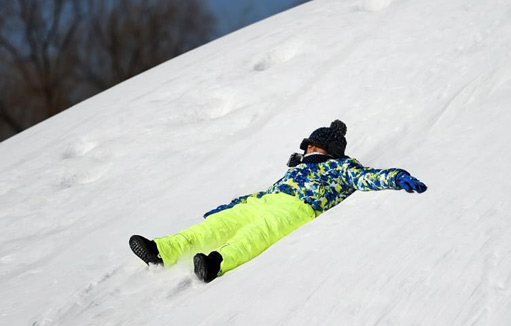 A visitor enjoys a "snow slide" at the Sun Island International Snow Sculpture Art Expo park in Harbin, capital of Northeast China's Heilongjiang province, Feb 17, 2018. Snow scenery here attracts tourists to enjoy the outdoor pleasure during the week-long Spring Festival holiday.
