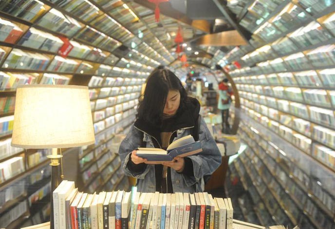 People read at the National Library of China in Beijing, capital of China, Feb 18, 2018, the fourth day of the Spring Festival holiday.