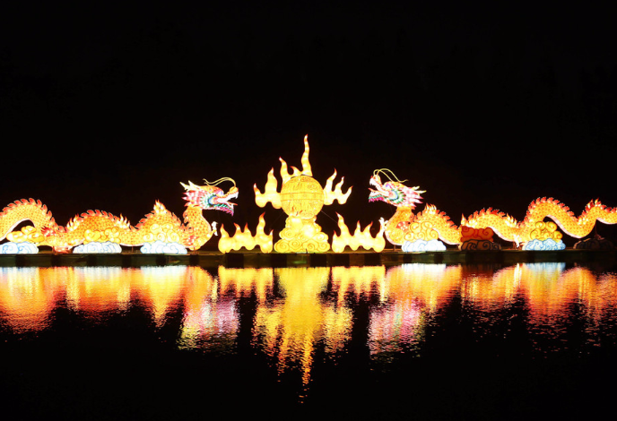 Tourists watch a light show at World Horticultural Expo Garden in Kunming, capital of Southwest China's Yunnan province, Jan 30, 2018.