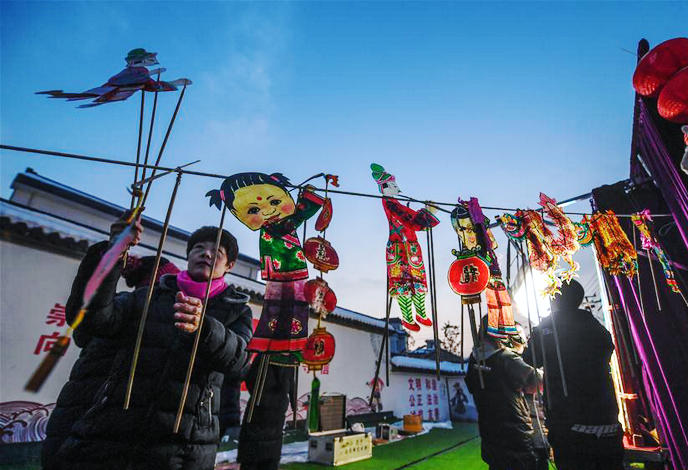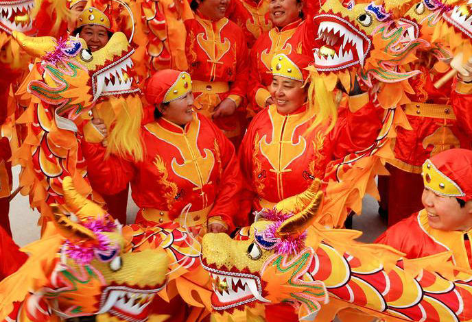 Villagers rehearse a dragon dance to make preparations to celebrate the Chinese Lunar New Year which falls on Feb 16 this year in Xiaoxinzhuang village of Huairou district in Beijing, capital of China, Jan 27, 2018.