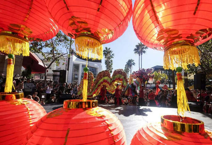 Dragon dancers perform during a celebration for Chinese lunar new year at the Original Farmers Market in Los Angeles, the United States, Jan 28, 2018.