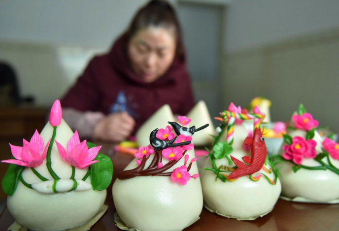 Steamed bun with colorful patterns is a traditional food during the Spring Festival in some parts of China.
