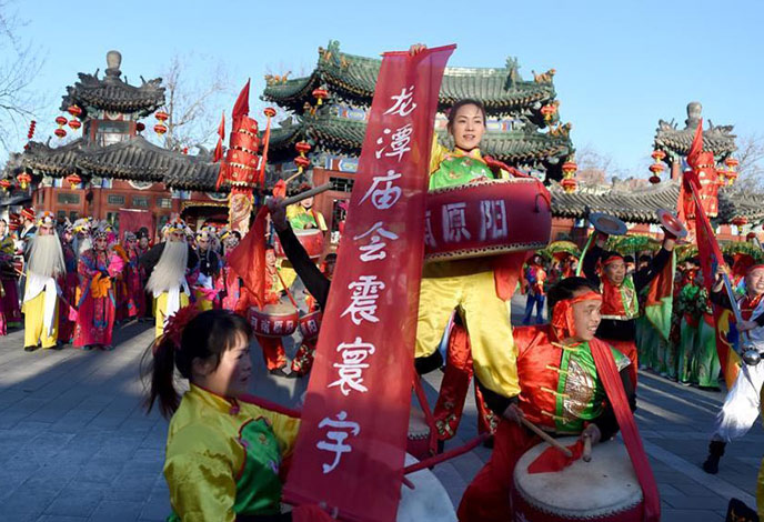 Actors perform at a temple fair in Longtanhu Park, in Beijing, capital of China, Feb 16, 2018. Various celebrations were held all over China, to embrace Chinese Lunar New Year.