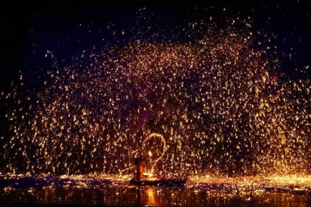 Dashuhua, literally translated as "striking tree flowers", is a local art form in Yuxian county, Zhangjiakou. Performers throw hot melted iron against walls to create a shower of sparks, just like fireworks. The tradition has been preserved for more than 500 years.