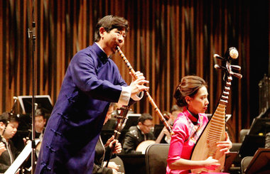 Artists of China National Traditional Orchestra perform during the orchestra's debut to media at the Kennedy Center in the capital of the United States on Friday.