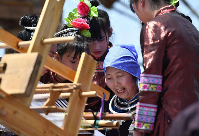 Aerial photo taken on April 17, 2018 shows people attending a singing party on the Longmen Mountain in Yatunbao town, Dong autonomous county of Tongdao, Central China's Hunan province.