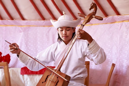 An orchestra comprising traditional vocalists and instrument players charms foreign audience. Chen Nan reports.